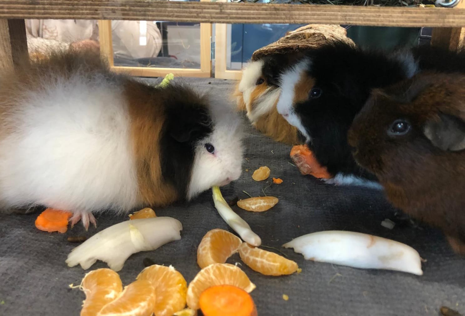 Max, Mousse et Mozart sont nés au printemps 2024, ils ont été rejoints par Patch et Teddy à l’automne. Les 5 petits gars vivent leur meilleure vie chez nous, ils sont timides, mais se montrent volontiers pour un bâtonnet de carotte ou de céleri.